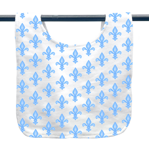 For the babies born in New Orleans or looking for a classic pattern. Blue fleur de lis on a white background make for a sophisticated bib. Desig...