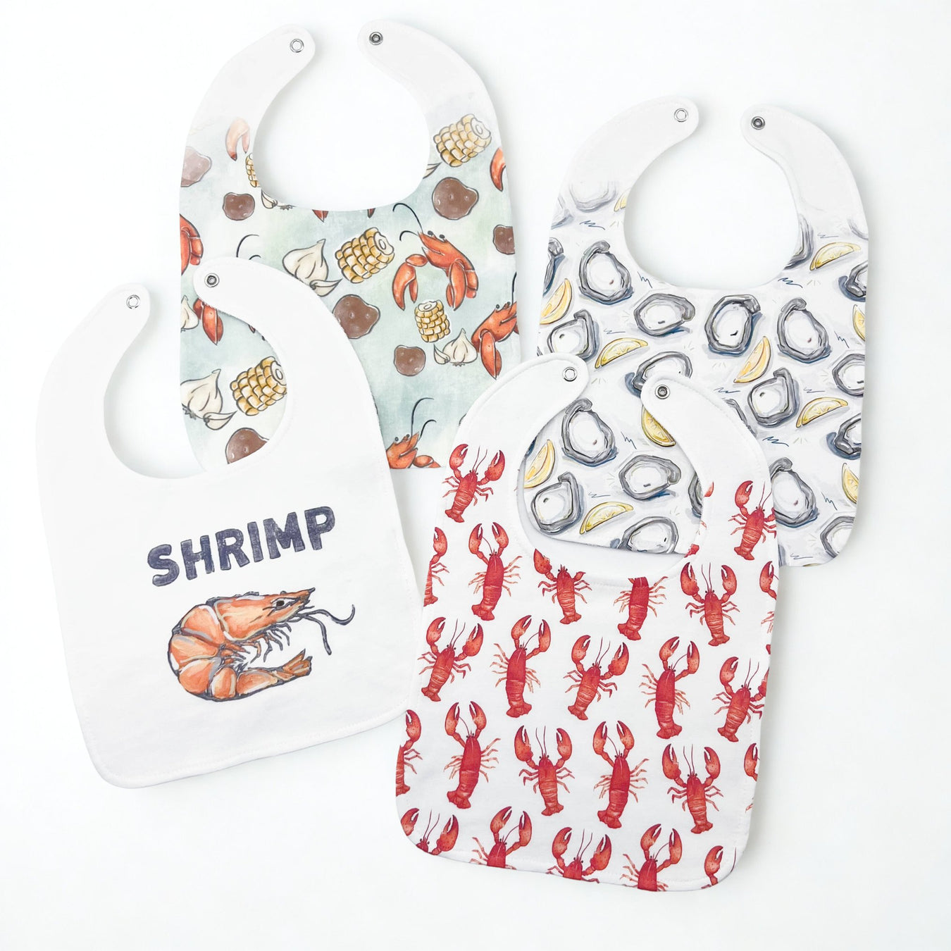 Add a splash of seaside charm to mealtime with this Lobsters Baby Bib, featuring an all-over print of bold, cheerful lobsters on a crisp white back...