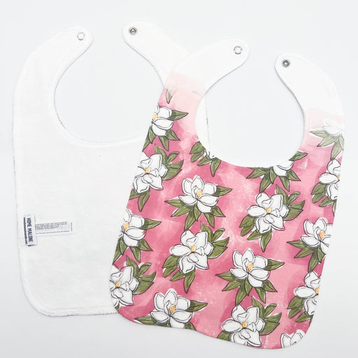 The classic southern flower, the Magnolia, on a pretty pink background. A sweet gift for any Southern baby girl. Designed and printed in New Or...