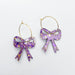 Hand-painted purple and gold bows on a gold hoop. An adorable earring for game day or every day! Geaux Tigers!!