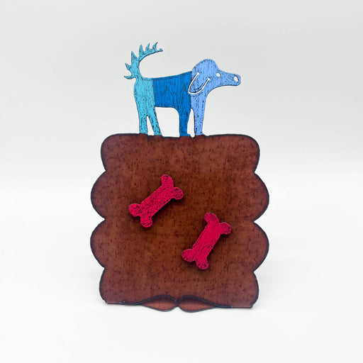 Handmade metal dog picture frame or announcement board with matching bone magnets to hold the image. Comes with two magnets and painted in assorted...