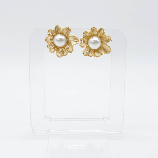 Delicate and charming, these pretty gold marigold flower studs add a touch of elegance to any outfit. Crafted with fine gold-tone petals, each earr...