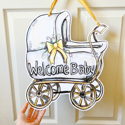 Baby welcome door hanger for new or soon to be parents! This door hanger comes in 3 different color options : pink, blue, or yellow!  Waterproof ...
