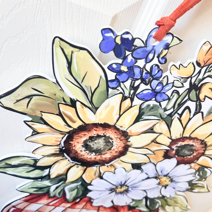 Welcome autumn in full bloom with this eye-catching Pumpkin Vase Door Hanger, where farmhouse charm meets fall elegance! This door hanger is overflowing with a vibrant arrangement of cozy fall flowers that will last you all of Pumpkin Spice season!