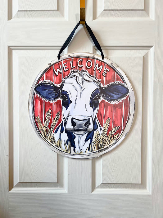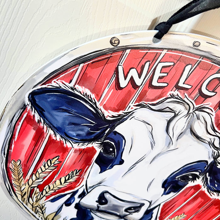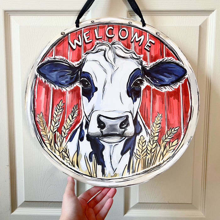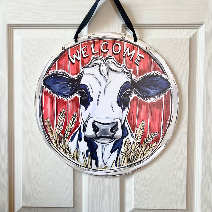 This hanger is a moo-st-have for your front door or kitchen wall! Welcome guests with a whole lot of country charm and a little bit of sass with this utterly adorable door hanger! This piece says “Howdy!” the farm-fresh way—with a big, bold "Welcome" that makes even the city folk feel right at home!