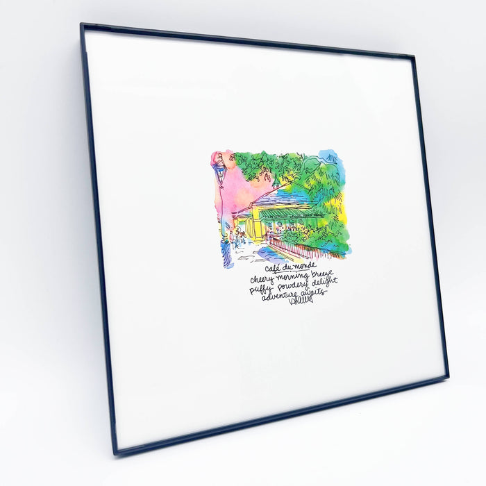 Lovely pieces of Tiny Haiku art that are framed in a minimalistic black plastic frame that measures 8 in x 8 in. Actual artwork print size measures anywhere from 2 in x 3 in to 4 in x 4 in.