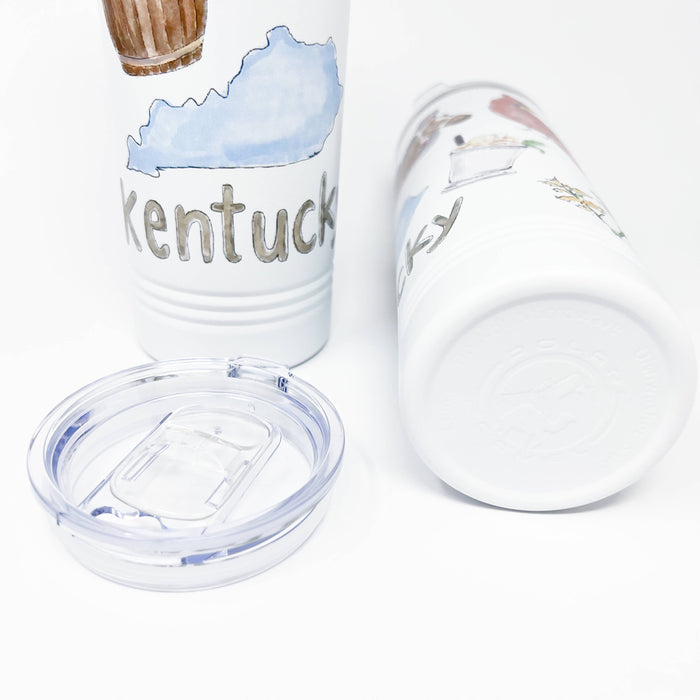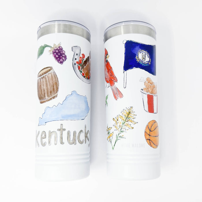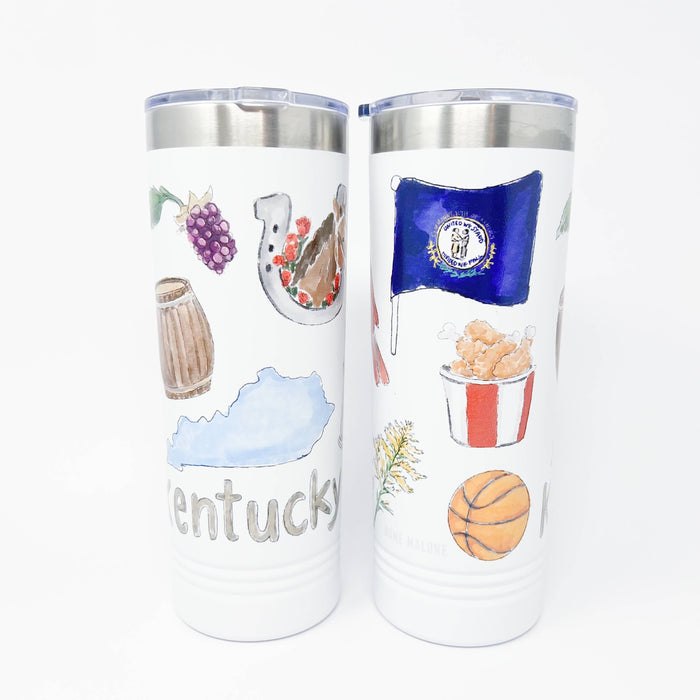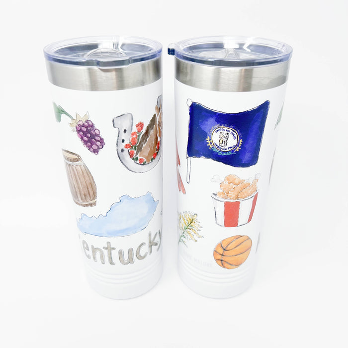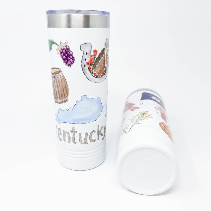 Celebrate the charm of the Bluegrass State with this Kentucky Icons Tumbler, featuring a delightful print of the state’s most beloved symbols. From the Northern Cardinal, Blackberry, basketball, derby, run for the roses, mint julep, goldenrod flower, and bourbon barrel to the iconic state flag, this tumbler brings a bit of Kentucky pride to every sip you take.