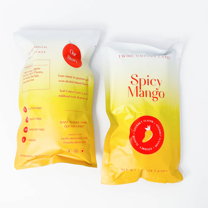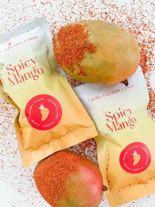 Sweet with a kick! This spicy mango cotton candy brings the heat and the sweet in one fluffy bite. Mango lovers, this one's got attitude.